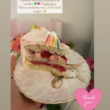 ”Täname teid väga teie töö eest. Koogid olid niiiiiii maitsvad, suvised, kerged, täis marju ja üliilusad!! Kõikidele väga, väga meeldisid. Saime palju positiivset tagasisidet 🩵